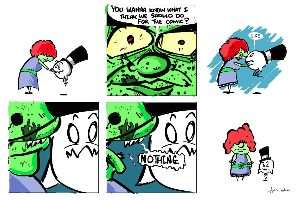 One-offs Stories that were made purely for the fun of making comics. Slide 1 Slide 1 (current slide) Slide 2 Slide 2 (current slide) Slide 3 Slide 3 (current slide) Slide 4 Slide 4 (current slide)